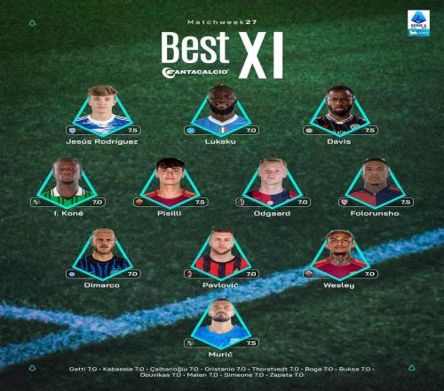 意甲第27輪最佳陣容:盧卡庫、迪馬爾科、帕夫洛維奇入選