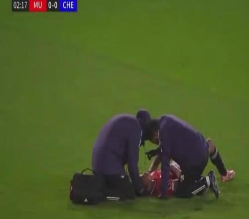 曼聯(lián)球員奇多-奧比經(jīng)過長(zhǎng)時(shí)間檢查后最終被替換下場(chǎng)。