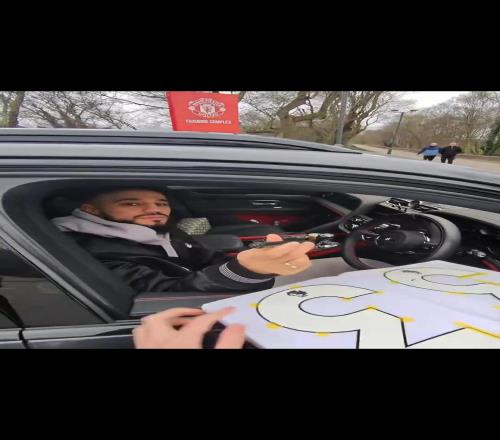 近日,曼聯(lián)后衛(wèi)馬茲拉維在訓(xùn)練基地外停車為球迷簽名,十分耐心,輪到疑似簽名販子上前索要簽名時(shí),他態(tài)度明顯轉(zhuǎn)變,潦草畫了兩筆,用敷衍方式“拒絕”為黃牛簽名。