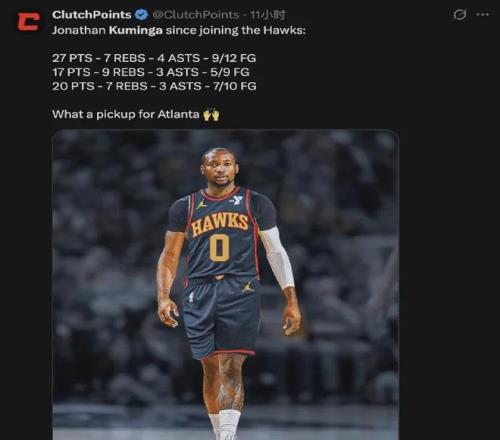 反觀與鉑金互換東家的庫明加,在老鷹混得那叫一個(gè)風(fēng)生水起,目前出戰(zhàn)三場比賽全部取勝,場均能夠貢獻(xiàn)21.3分7.7板3.3助1.7斷,投籃命中率高達(dá)67.7%,三分命中率達(dá)到55.6%,直接打成了全明星前鋒水平。