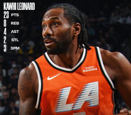 倫納德自感恩節(jié)后就沒有下過20+,本賽季的倫納德場均32.6分鐘,拿到27.8分6.3籃板3.7助攻2搶斷0.5蓋帽,命中率49.6%,三分命中率37.8%。