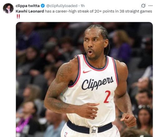 此役倫納德還完成連續(xù)38場比賽20+創(chuàng)造職業(yè)生涯新高,這也是快船隊史第二長,最長的是74-75賽季的鮑勃-麥卡杜44場,本賽季倫納德就有希望打破這項紀錄。