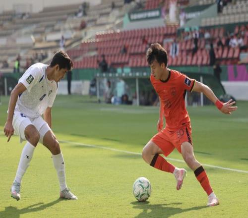 ↑1月17日,中國(guó)隊(duì)球員王鈺棟(右)在U23男足亞洲杯四分之一決賽比賽中。新華社記者 王海洲 攝