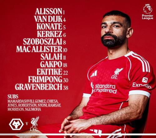利物浦客戰(zhàn)狼隊(duì):薩拉赫、埃基蒂克、加克波首發(fā),弗林蓬出戰(zhàn)