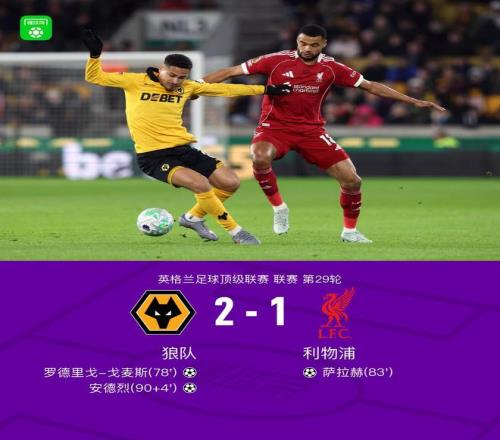 劍南春利物浦12狼隊,安德烈補(bǔ)時絕殺,薩拉赫破門難救主