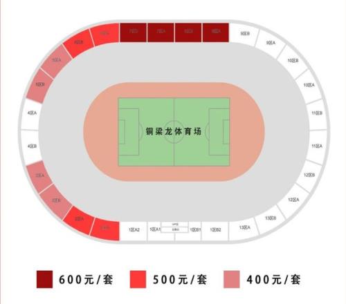 銅梁龍?bào)w育場散球迷套票價(jià)格及相關(guān)區(qū)域。 重慶銅梁龍俱樂部供圖