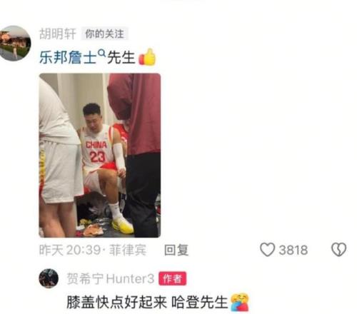 在世預賽的比賽結(jié)束之后,胡明軒第一時間在賀希寧的社交平臺留言,點贊好兄弟的表現(xiàn),而賀希寧也回應談到了小胡的傷病情況。大概的意思就是說希望小胡的膝蓋傷病趕緊好起來。從好兄弟的這番話我們才知道,原來胡明軒的他的膝蓋傷病一直都沒有痊愈。雖然說此前全運會的比賽,就已經(jīng)隱隱透露出類似的一些問題,但是這幾個月時間以來,胡明軒時不時也在國內(nèi)打比賽,這一次也跟隨國家隊去到日本,去到菲律賓。所以大家都覺得胡明軒的身體恢復已經(jīng)差不多了,只是為了保險沒有上場比賽而已,沒想到現(xiàn)在還是有挺嚴重的問題。