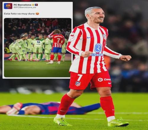 賽后,馬競球員格列茲曼曬出了一張引發(fā)爭議的照片:背景是終場哨響后癱倒在地的巴薩球員,配文:“這照片太狠了?!?/p>