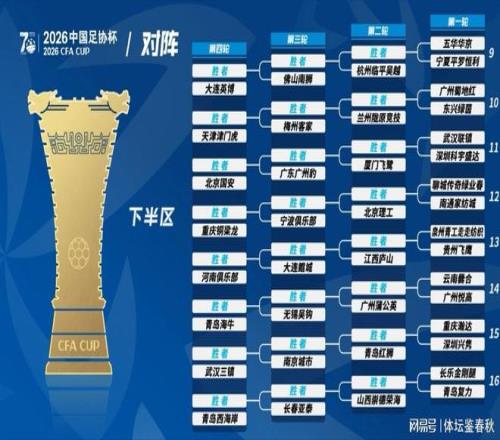 值得一提的是,本次抽簽,上海海港、上海申花、成都蓉城、山東泰山和浙江隊全部在上半?yún)^(qū)。下半?yún)^(qū)除了國安,并沒有真正意義上的中超強隊。但這并不意味著國安的賽程輕松,因為等到16強產(chǎn)生后,第五至第八輪的足協(xié)杯比賽將重新打亂抽簽,和原來的上下半?yún)^(qū)沒有任何關(guān)系。