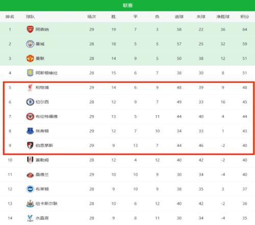 榜首的阿森納,瓜迪奧拉的曼城拿下歐冠席位一點(diǎn)問題都沒有,那么剩下的三個名額將由多達(dá)6支球隊進(jìn)行拼殺:曼聯(lián)、維拉、利物浦、切爾西、布倫特福德和埃弗頓。