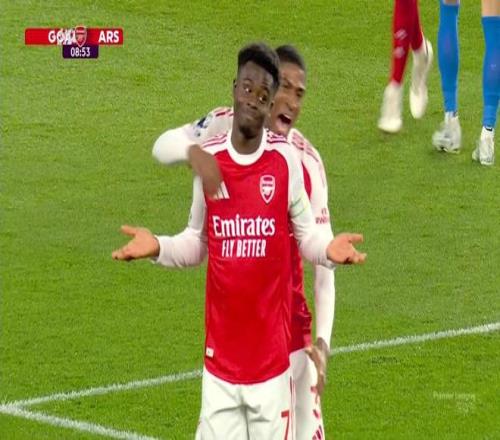 此役客場對陣布萊頓,作為隊長首發(fā)出戰(zhàn)的薩卡在比賽第9分鐘破門,幫助阿森納取得1-0領(lǐng)先。