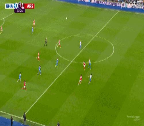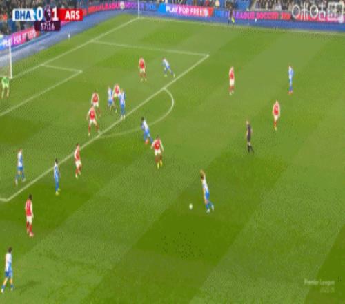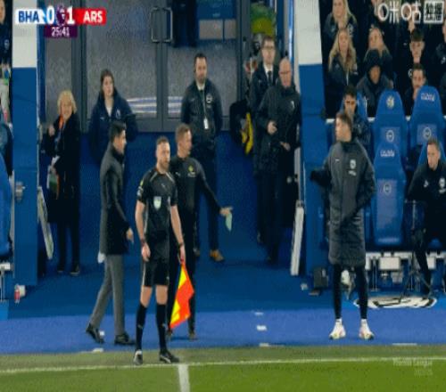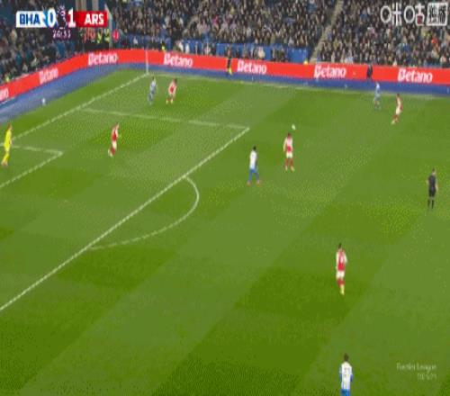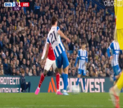 第25分鐘,布萊頓快發(fā)任意球失誤,皮球直接擊中自家隊友