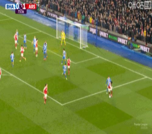 第9分鐘,薩卡右路內(nèi)切擊中巴萊巴稍稍變線破門,阿森納1-0布萊頓