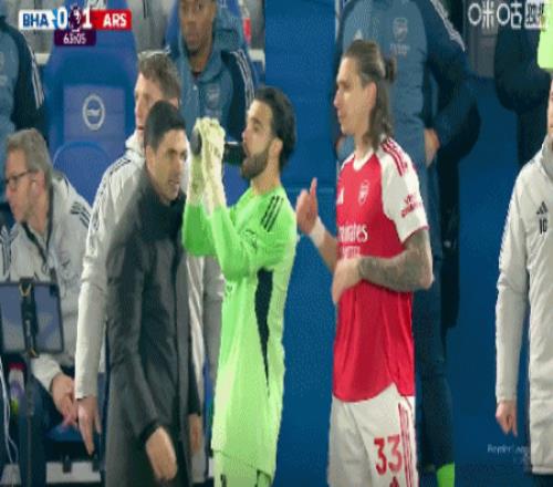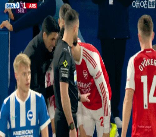 第26分鐘,互相指責,阿爾特塔和許爾策勒場下言語沖突