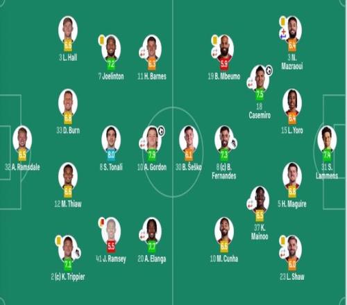 紐卡首發(fā):32-拉姆斯代爾、2-特里皮爾、3-劉易斯·霍爾、12-佳夫、33-丹-伯恩、7-喬林頓、8-托納利(97'4-博特曼)、41-雅各布·拉姆塞、10-戈登(85'23-雅各布·墨菲)、11-巴恩斯(46'28-威洛克)、20-伊蘭加(85'18-奧蘇拉)
