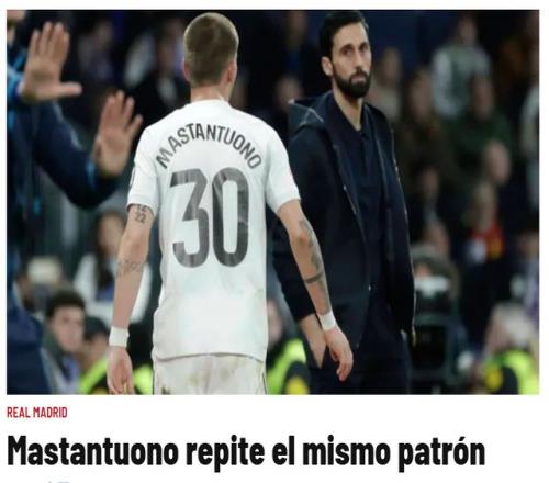 18歲的馬斯坦托諾,再次回歸替補席。3月5日,《馬卡報》和《阿斯報》撰文,分析阿根廷小馬哥的處境。阿隆索、阿韋洛亞兩任皇馬主帥,都非常信任馬斯坦托諾,但阿根廷小將未能證明自己。
