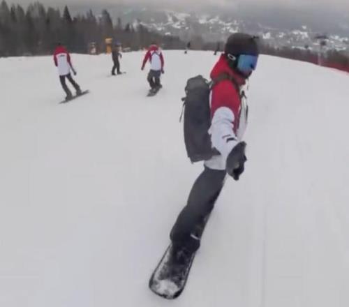 中國殘奧單板滑雪教練員牛天然給《華夏時(shí)報(bào)》記者發(fā)來的滑雪第一視角視頻顯示,每一名運(yùn)動(dòng)員都背著物資包,里面裝有滑雪的備用物品以及水,補(bǔ)充能量的食物等常用物品,大部分運(yùn)動(dòng)員身著紅色的中國體育代表團(tuán)服裝,在雪道之上,他們?nèi)缬昔~般靈動(dòng)自如。