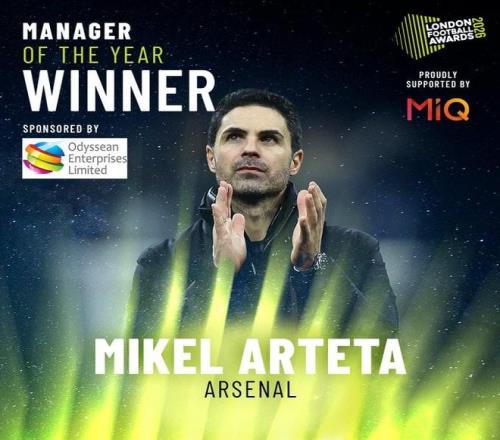 據(jù)倫敦足球獎官方消息,阿森納中場賴斯當(dāng)選英超年度最佳球員,阿爾特塔當(dāng)選英超年度最佳主帥,頒獎典禮將于英國當(dāng)?shù)貢r間今晚在倫敦進行。