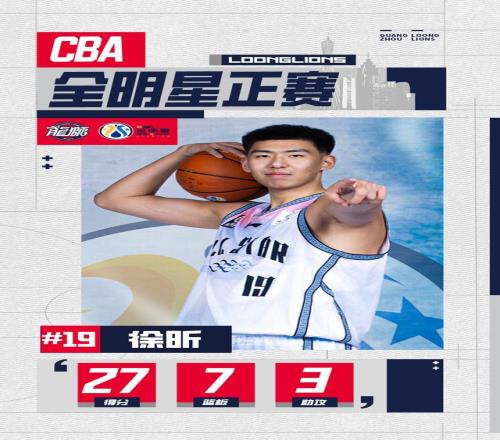 徐昕替補(bǔ)出戰(zhàn)全明星正賽,拿下27分7籃板3助攻,17投13中,效率驚人!幫助南區(qū)明星隊(duì)擊敗北區(qū),首次全明星之旅即閃耀全場(chǎng)!