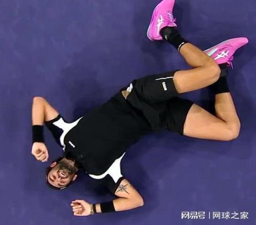 最后來猜一猜認(rèn)一認(rèn)。下面這張圖片是一位球員贏球后倒地。不作提示,您能認(rèn)出他是誰嗎?