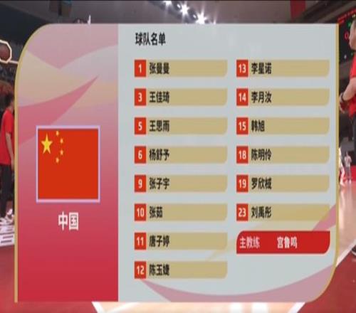 中國女籃:唐子婷12分4板1助、劉禹彤11分4板、陳明伶10分4板、張子宇8分3板、張曼曼7分5板7助2斷、楊舒予7分4板4助、王佳琦6分3板2助、羅欣棫6分3板3斷、張茹5分6板3助、陳玉婕4分9板6助、韓旭4分2板、李星諾3分2板。