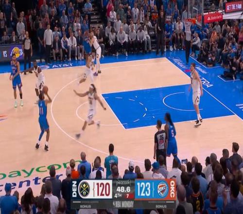 ——剩下9秒前,杰林威廉姆斯犯錯(cuò),約基奇與穆雷防拆,接球投進(jìn)三分的同時(shí),杰林推倒了穆雷,按規(guī)則,穆雷加罰命中,一個(gè)回合,掘金拿了4分,追平比賽