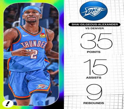 這場(chǎng)意義不用多說(shuō),兩大MVP候選人再次正面對(duì)話,然后亞歷山大打出了一場(chǎng)可能終結(jié)MVP討論的超級(jí)比賽: