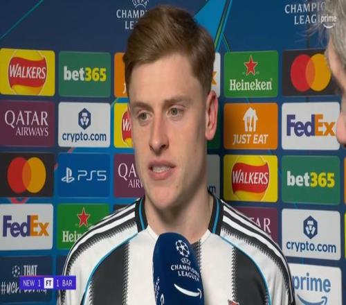 在歐冠1/8決賽首回合打進(jìn)一球幫助紐卡斯?fàn)柭?lián)主場(chǎng)1-1戰(zhàn)平巴塞羅那之后,哈維-巴恩斯接受了來(lái)自亞馬遜Prime Video的采訪。