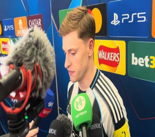 在歐冠1/8決賽首回合打進一球幫助紐卡斯?fàn)柭?lián)主場1-1戰(zhàn)平巴塞羅那之后,哈維-巴恩斯在混合采訪區(qū)接受了現(xiàn)場諸多媒體的采訪。
