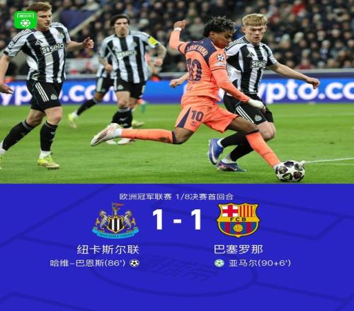 北京時間3月11日歐洲冠軍聯(lián)賽 1/8決賽首回合,紐卡斯爾聯(lián)對陣巴塞羅那。紐卡斯爾聯(lián)哈維-巴恩斯破門。巴塞羅那亞馬爾破門。最終比分紐卡斯爾聯(lián) 1-1 巴薩。