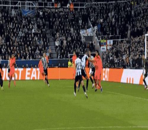 比賽一開打,主場作戰(zhàn)的紐卡斯爾很快進入狀態(tài)。僅開打3分鐘,紐卡就利用角球制造混亂,連續(xù)兩次頭球攻門險些破門。巴薩門將霍安·加西亞雖然出現(xiàn)撲救脫手,但最終還是靠防線解圍化險為夷。