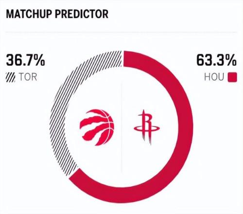 賽前,美媒ESPN對本場比賽進(jìn)行了勝率預(yù)測,火箭隊(duì)勝率高達(dá)63.3%,猛龍勝率則僅有36.7% ,差距還挺明顯。