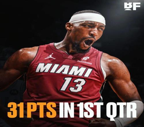 第三節(jié)打完,62分。熱火隊(duì)史單場(chǎng)得分紀(jì)錄原由勒布朗-詹姆斯保持的61分,作古。阿德巴約三節(jié)62分,追平科比在2005年創(chuàng)下的Play-By-Play時(shí)代三節(jié)得分紀(jì)錄。