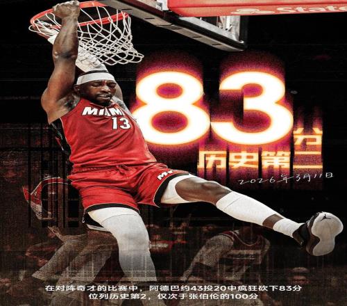 本場比賽阿德巴約全場砍下83分9籃板3助攻2蓋帽的逆天數(shù)據(jù),全場43投22中,三分22中7,罰球43中36,成功超越科比,獨享歷史第二!如果排除上古巨獸張伯倫的100分(1962年的NBA比賽節(jié)奏快,單場比賽平均回合數(shù)為131次,而當代籃球回合數(shù)基本在80-100次,當時張大帥自己出手就63次),阿德巴約坐穩(wěn)現(xiàn)代籃球歷史第一!