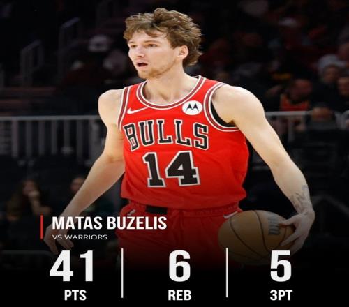 全場比賽布澤利斯45分鐘,28中16,三分15中5,罰球5中4,拿到41分6籃板2助攻2搶斷2蓋帽,命中率57.1%,三分命中率33.3%,他也一戰(zhàn)創(chuàng)造多項紀錄。