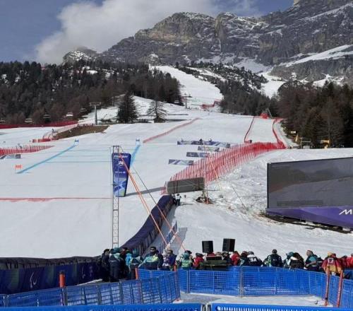 奧林匹亞-德拉-托法納(Olympia delle Tofane)賽道被譽(yù)為“速度與腎上腺素女王”。賽道全長(zhǎng)2560米,垂直落差高達(dá)750米。選手比賽時(shí)從一段坡度達(dá)到64%的陡坡起跳,選手將在此達(dá)到全程的最高時(shí)速,隨后迎來“杜卡·達(dá)奧斯塔跳臺(tái)”(Duca d’Aosta jump)。進(jìn)入賽道中段的標(biāo)志性彎道“大彎道”(Gran Curvone),開啟充滿挑戰(zhàn)的核心賽段,并接連迎來技術(shù)難度極高的“斯卡爾帕東”(Scarpadon)區(qū)段。