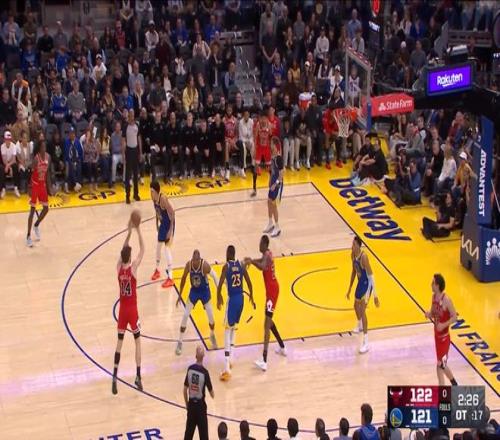 常規(guī)賽,公牛客場(chǎng)130-124戰(zhàn)勝勇士。