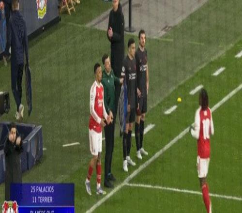 第46分鐘,格里馬爾多開出角球,安德里希頭球破門,勒沃庫森1-0阿森納