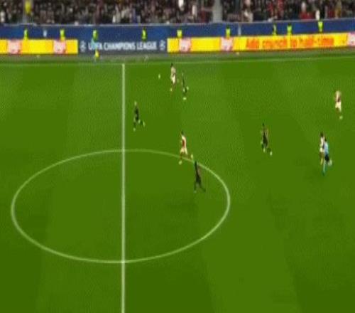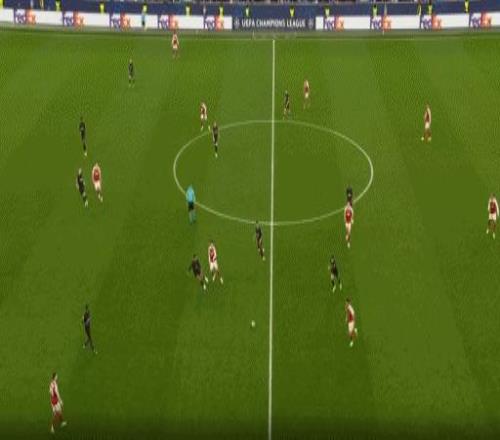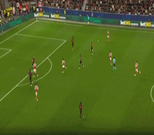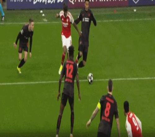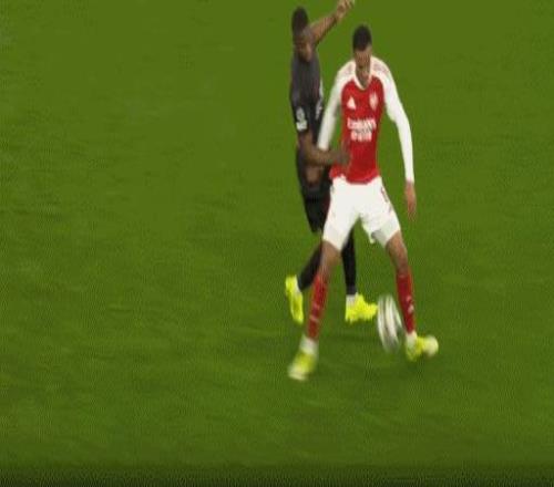 第45分鐘,薩卡帶球長驅(qū)直入,最后被搶斷