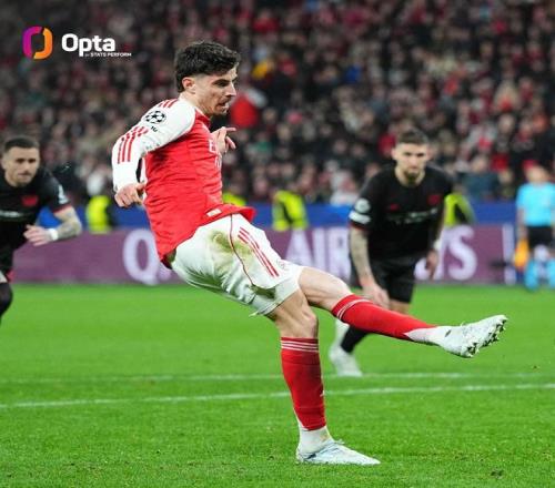 歐冠1/8決賽首回合,阿森納客場1-1戰(zhàn)平勒沃庫森,哈弗茨在比賽第89分鐘罰入絕平點球,據(jù)統(tǒng)計,這是阿森納自2010年3月以來在歐戰(zhàn)最晚打入的點球。