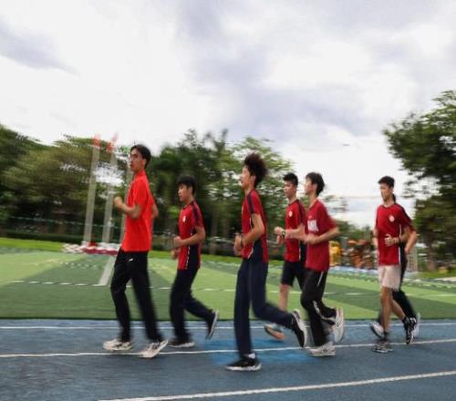 廣州市中黃港澳子弟學(xué)校學(xué)生進(jìn)行慢跑訓(xùn)練。 新華社記者 劉大偉 攝