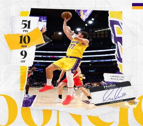 北京時(shí)間3月13日,湖人以142-130大勝公牛拿到四連勝,此役后湖人的西部排名升到第三的位置。這場比賽是盧卡-東契奇之夜,他拿到51分10籃板9助攻的準(zhǔn)三雙數(shù)據(jù),只差1個(gè)助攻就完成50+三雙的超級(jí)數(shù)據(jù)。