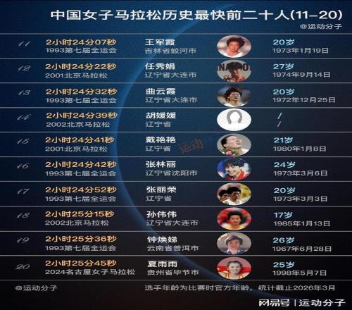 現(xiàn)役僅兩人上榜,盤(pán)點(diǎn)中國(guó)女子馬拉松歷史最快前20人
