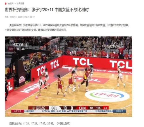 新華網(wǎng):《世界杯資格賽中國女籃不敵比利時(shí)隊(duì)》2026年3月13日新華社新聞:《宮魯鳴:中國女籃要通過與世界強(qiáng)隊(duì)交手提升水平》2026年3月12日央視網(wǎng):《世界杯資格賽:張子宇20+11 中國女籃不敵比利時(shí)》2026年3月12日