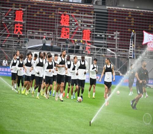 重慶銅梁龍全隊在龍興足球場踩場訓(xùn)練。