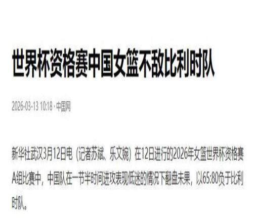 但在3月12日晚對(duì)戰(zhàn)比利時(shí)的比賽中,中國(guó)女籃非常遺憾的輸?shù)袅吮荣悺?/p>