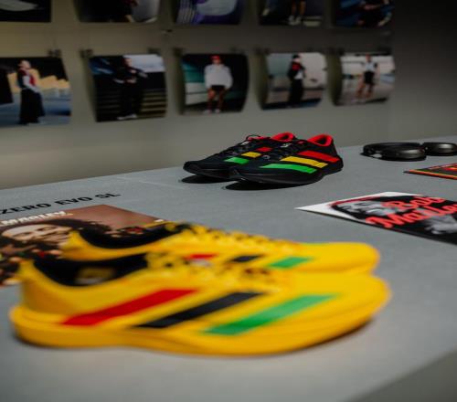 活動現(xiàn)場展出的ADIZERO的多款聯(lián)名系列,圖為與牙買加雷鬼音樂傳奇人物Bob Marley的聯(lián)名款