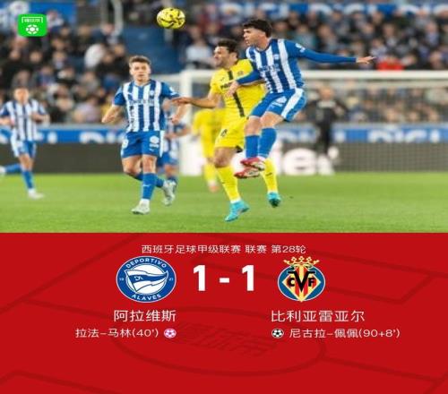 北京時(shí)間3月14日西班牙足球甲級(jí)聯(lián)賽 聯(lián)賽 第28輪,阿拉維斯主場(chǎng)對(duì)陣比利亞雷亞爾。比利亞雷亞爾尼古拉-佩佩破門,拉法-馬林自擺烏龍。最終比分阿拉維斯 1-1 比利亞雷亞爾。