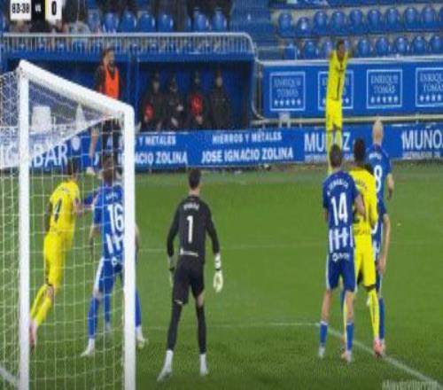 第40分鐘,拉法-馬林頭球解圍變?yōu)觚?,阿拉維斯1-0比利亞雷亞爾