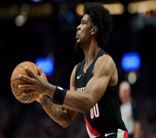 開拓者球員亨德森上半場替補(bǔ)出場手感火熱,他充當(dāng)起球隊(duì)主要得分點(diǎn),尤其是三分線外命中率相當(dāng)不錯。